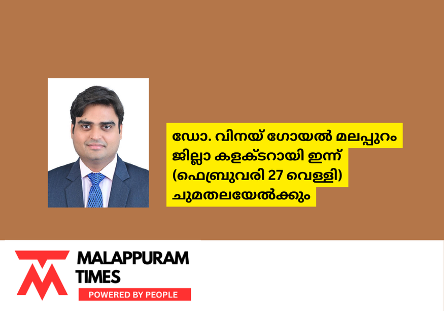 ഡോ. വിനയ് ഗോയൽ മലപ്പുറം ജില്ലാ കളക്ടറായി ഇന്ന് (ഫെബ്രുവരി 27 വെള്ളി) ചുമതലയേൽക്കും