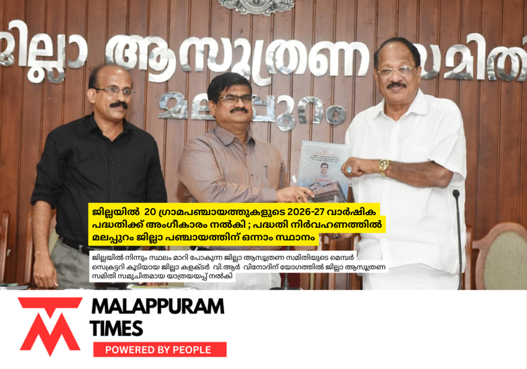 ജില്ലയിൽ 20 ഗ്രാമപഞ്ചായത്തുകളുടെ 2026-27 വാർഷിക പദ്ധതിക്ക് അംഗീകാരം നൽകി ; പദ്ധതി നിര്വഹണത്തിൽ മലപ്പുറം ജില്ലാ പഞ്ചായത്തിന് ഒന്നാം സ്ഥാനം